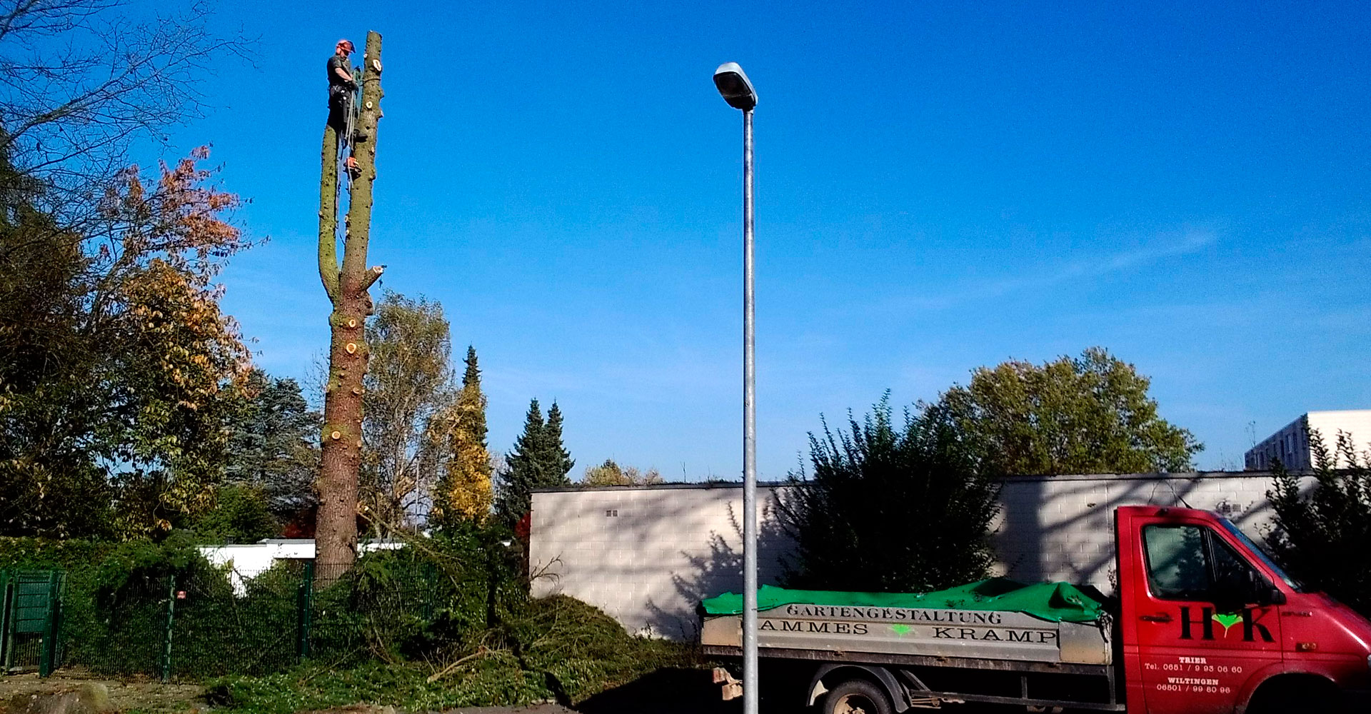 Fällen einer 12 Meter hohen Zeder mittels Seilklettertechnik.